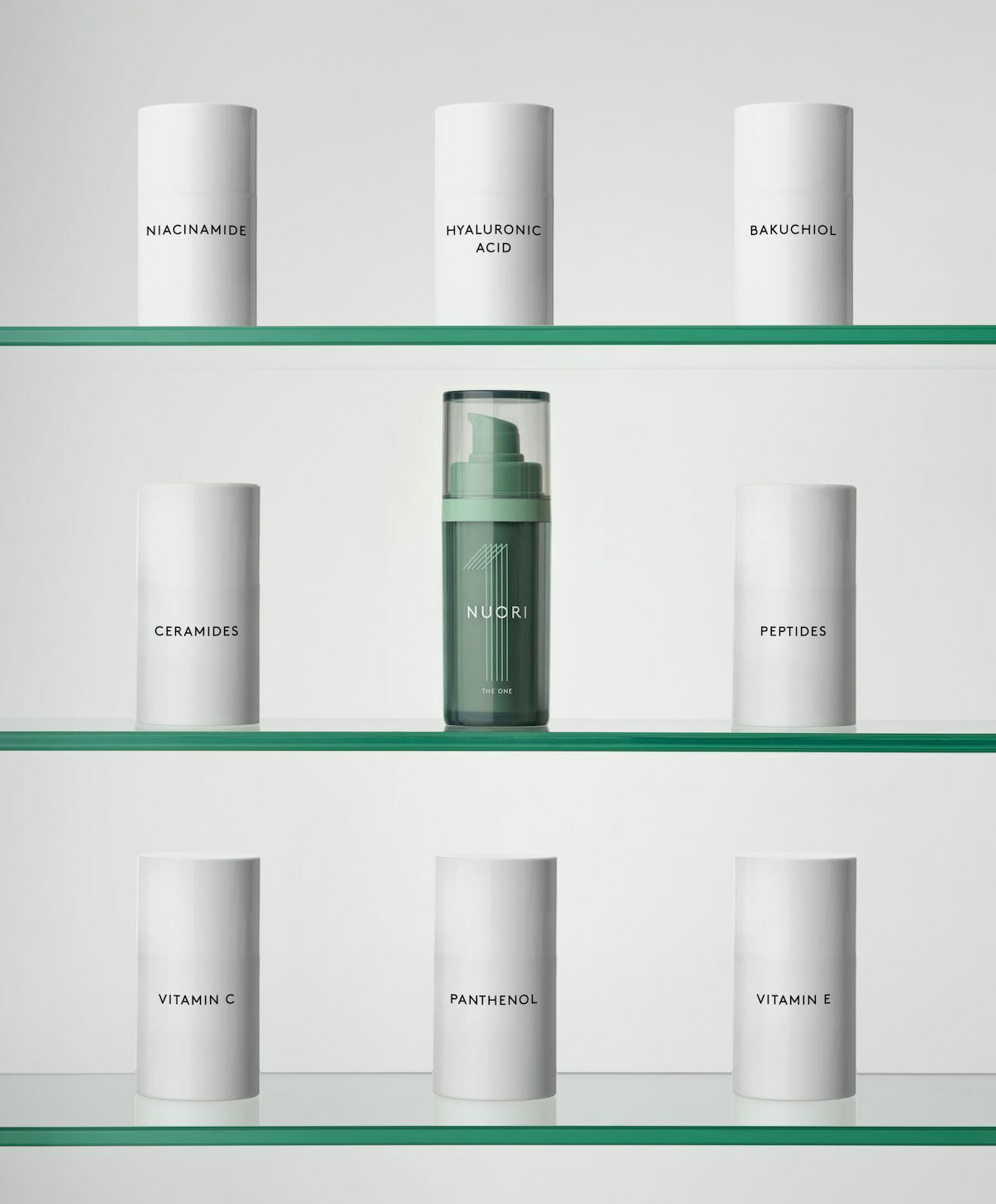 菸鹼醯胺、神經醯胺、補骨脂酚、天然玻尿酸、胜肽、維生素C、泛醇、維生素E等如原廠所示。